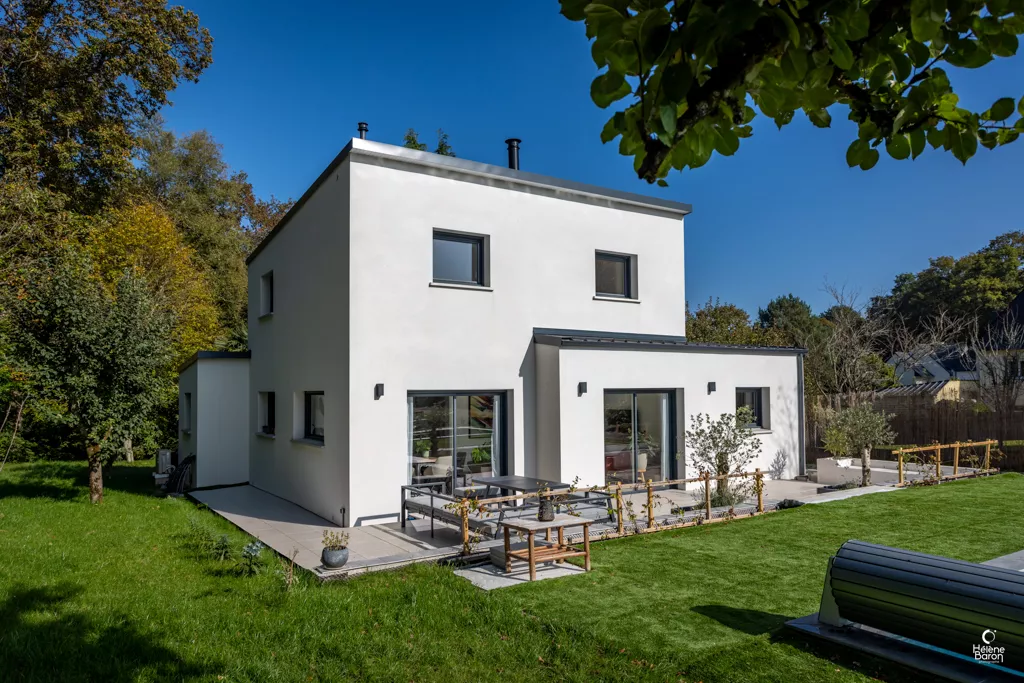 Implantée à Bignan sur un terrain dégagé, cette maison contemporaine, exposée plein sud, et de dimensions maîtrisées, se distingue par sa conception esthétique, fonctionnelle, mais aussi évolutive.